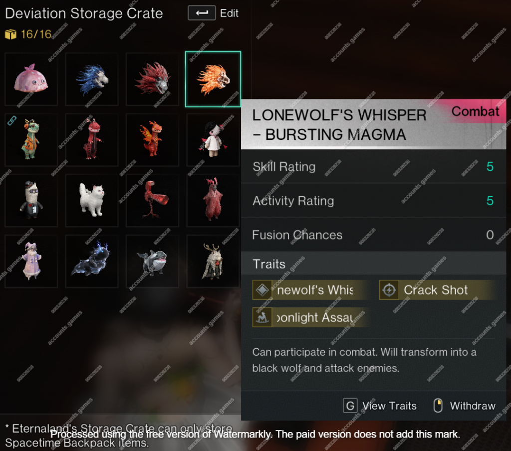The account is fully geared with powerful PVE weapons such as: DE.50 – Jaws, M416 – Silent Anabasis, ACS12 – Corrosion, PWD90 – Holographic Resonance, SOCR, KAM – Abyss Glance and KVD – Boom! Boom! You can jump right in and start playing with friends instantly after the purchase.